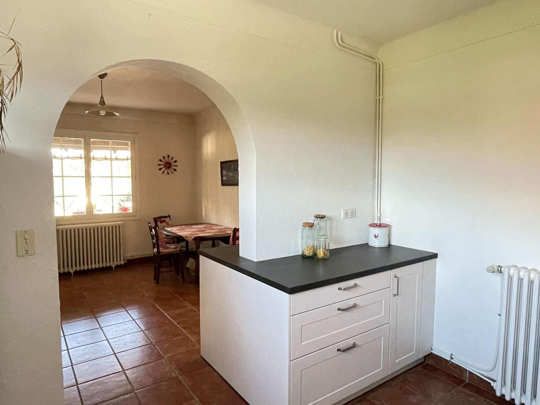 Elle se compose d'une grande pièce de vie lumineuse et ouverte sur la cuisine équipée et aménagée.
