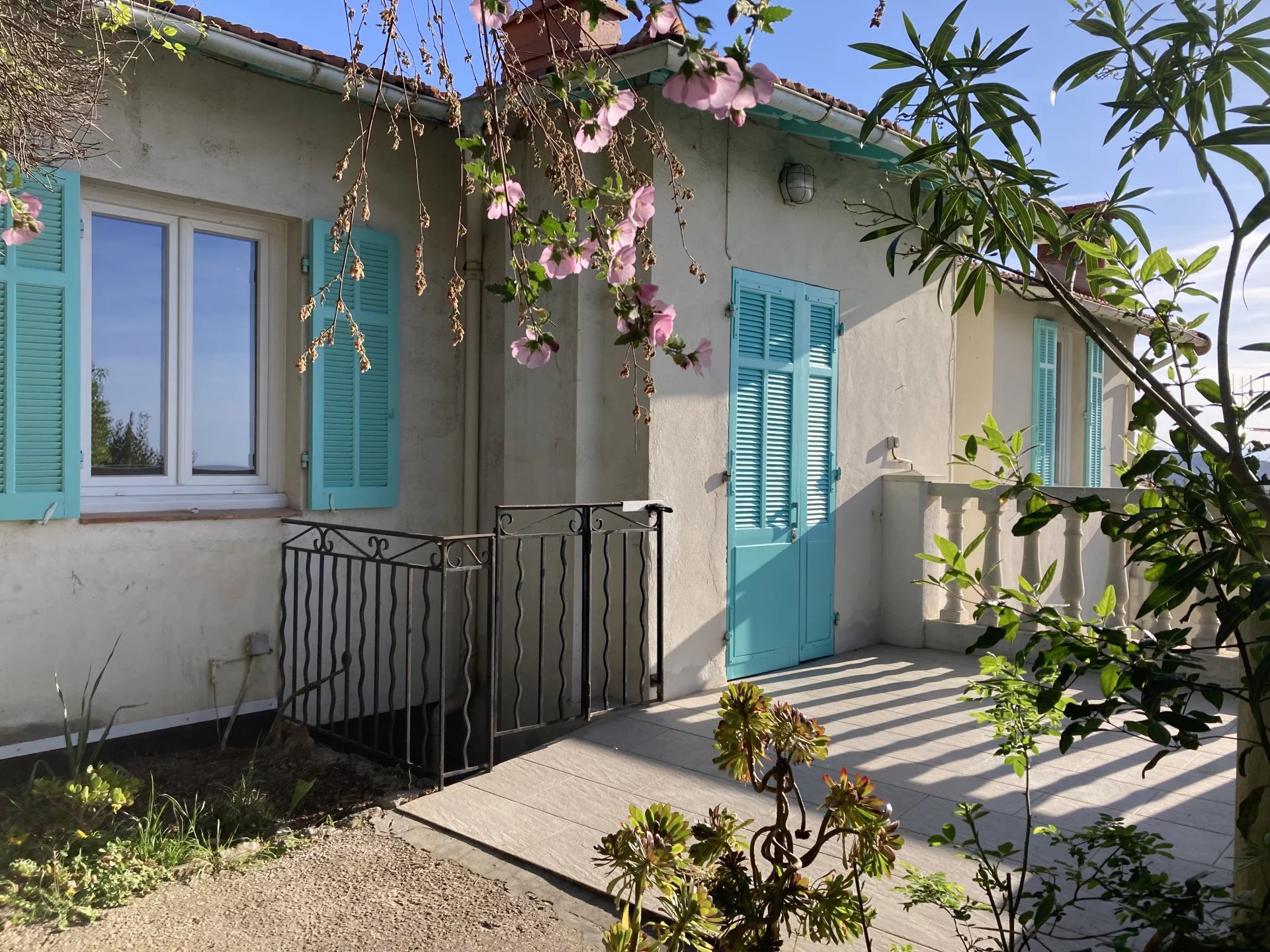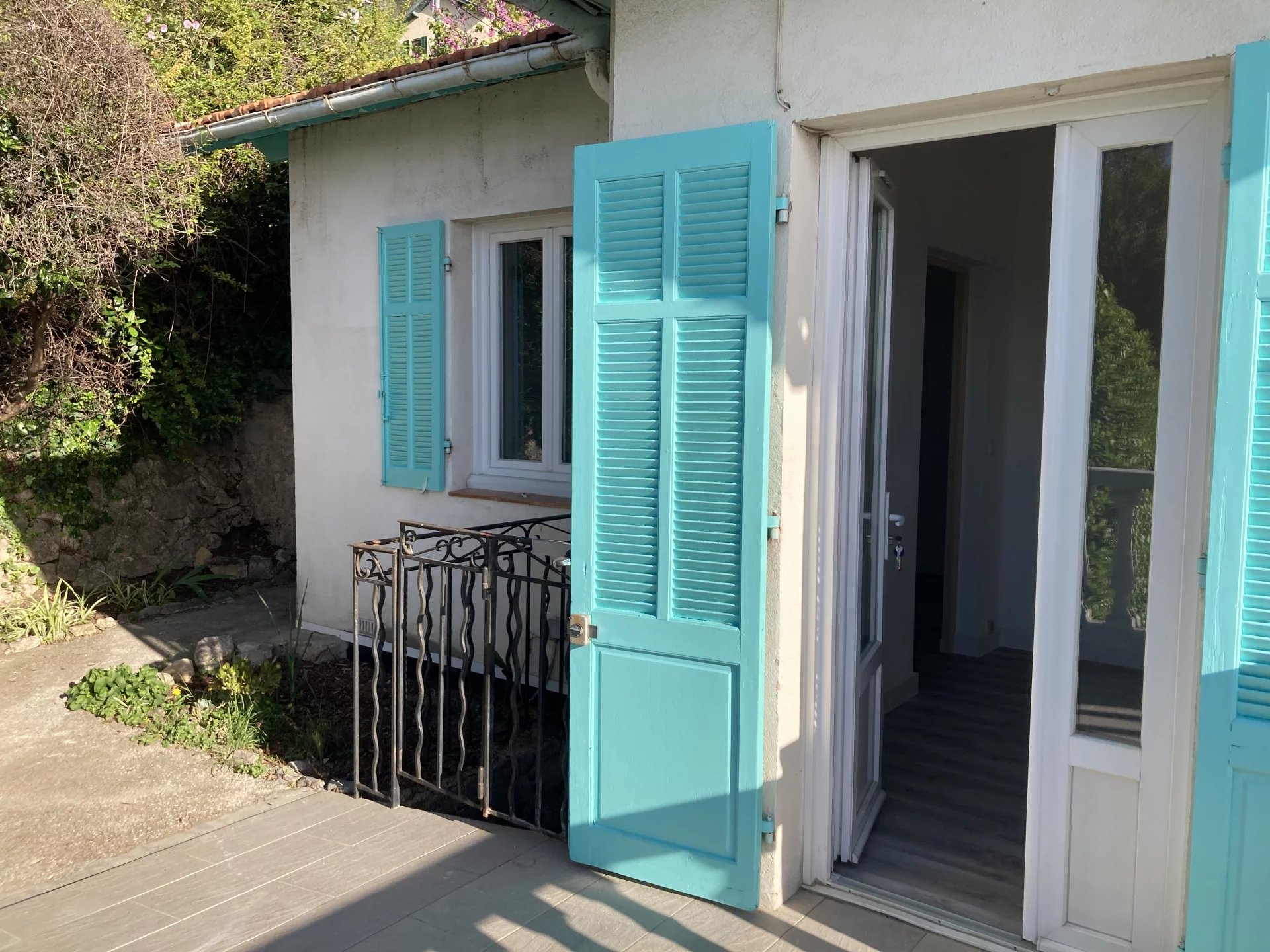 Grasse sur les hauteurs : 2/3 pièces tout en haut d'une résidence au calme, comprenant une grande entrée, une cuisine, une chambre, un bureau, salle de douche refaite, wc indépendant, cabanon, terrasse et jardin