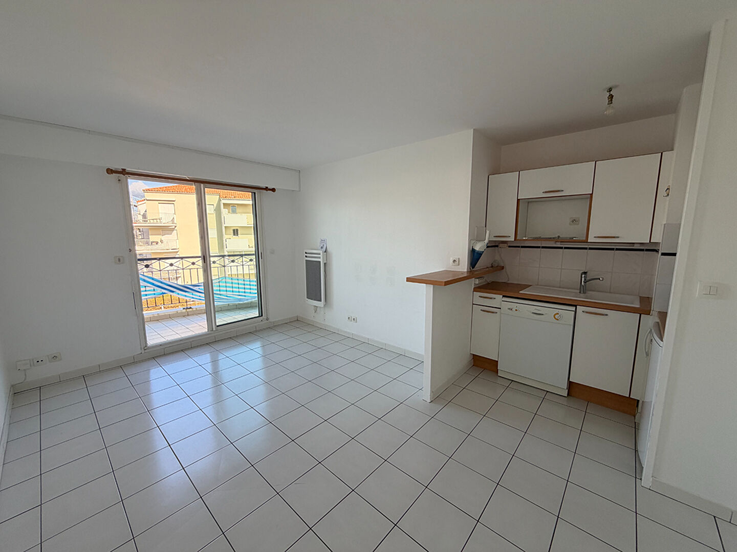 Appartement meublé situé en rez-de-chaussée d'une résidence sécurisée, avec piscine : comprenant entrée, séjour, coin cuisine aménagée et équipée, salle d'eau, wc, une chambre, une terrasse. Une place de parking. Chauffage électrique.