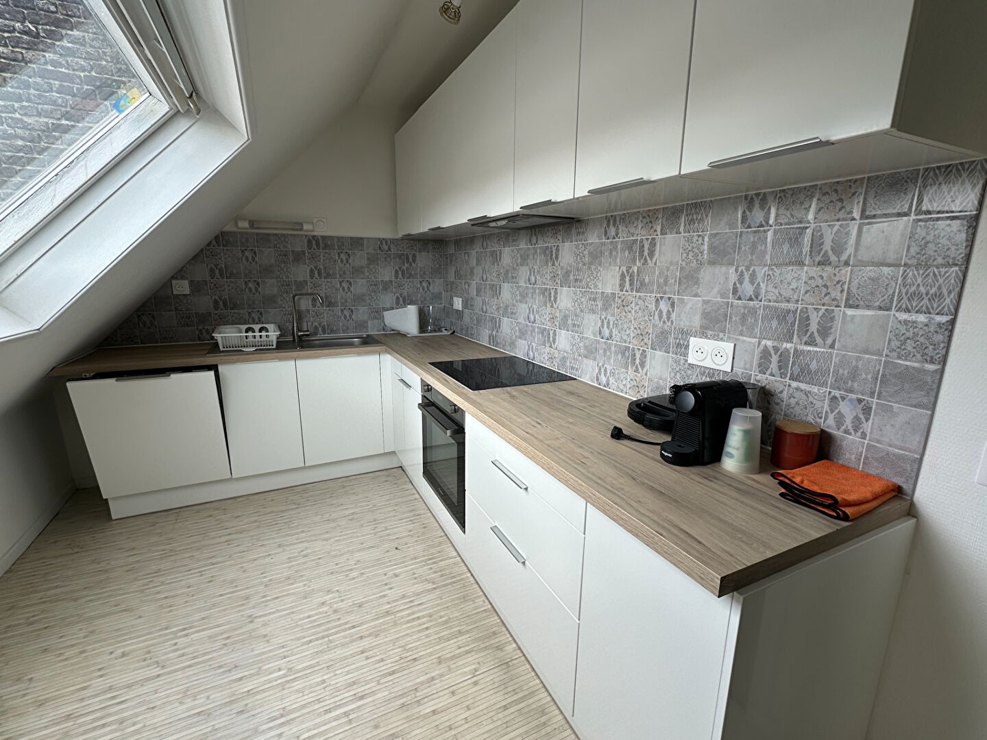 Rue du Faisan, ce studio meublé de 16.89 m² loi carrez ( 25.24 m² au sol) proposant une pièce de vie avec coin cuisine équipé ainsi qu'une salle de bain avec WC et qu'un coin nuit en mezzanine.