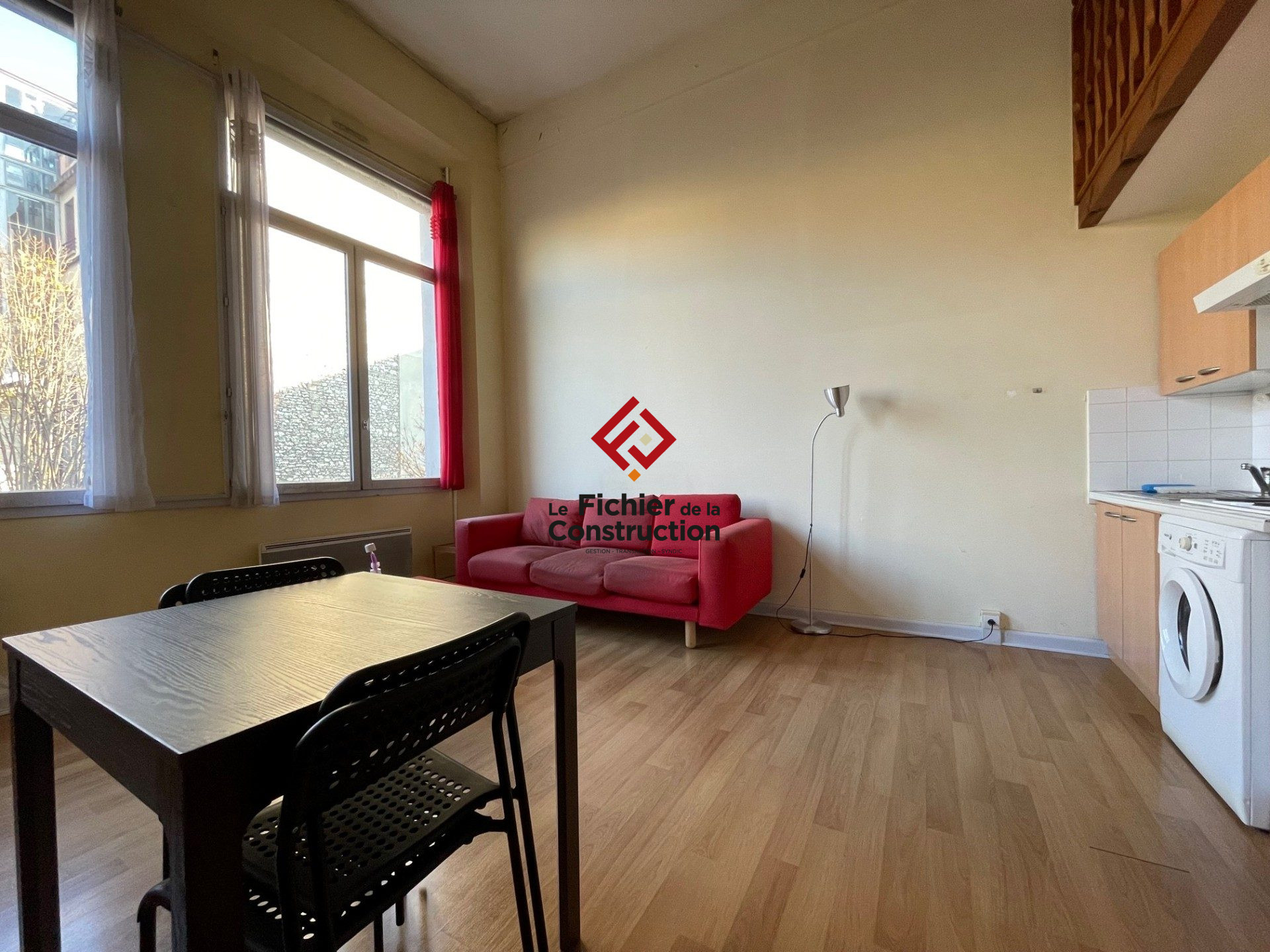 GRENOBLE - 20 rue Paris - Quartier de l'Aigle - Appartement meublé de type 1 pièce + cuisine de 27.45 m² au sol avec grande mezzanine à l'étage, pièce principale spacieuse et lumineuse avec grandes fenêtres et volets roulants électriques, kitchenette...