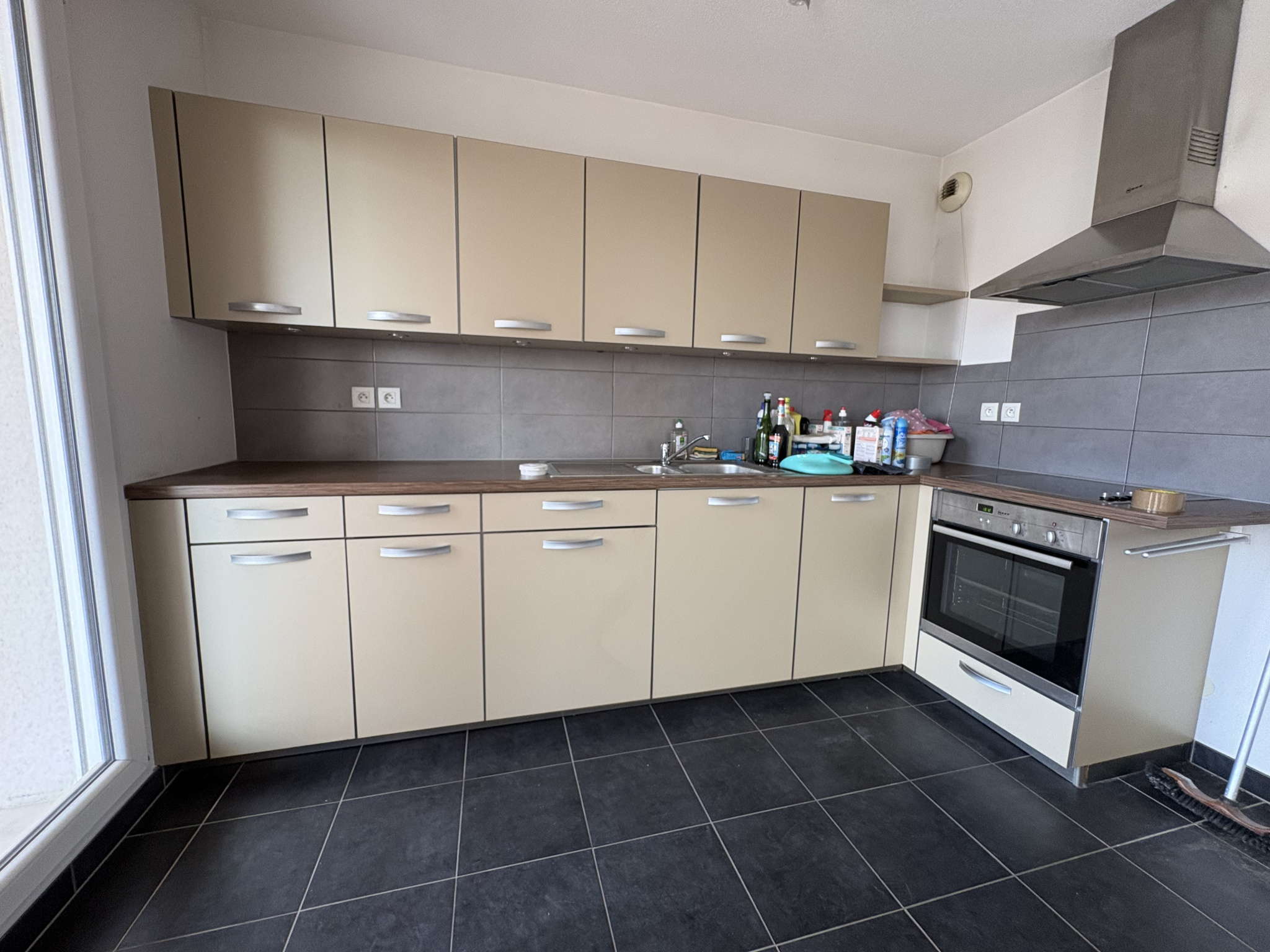 A 200 m de la frontière suisse et à 5 min à pied du Tram 11, au 6ème étage d'un immeuble calme, ce spacieux F3/4 de 78 m2 comprend : entrée avec placard, cuisine séparée partiellement équipée (hotte, four et plaque de cuisson) avec balcon, grand salon-séj...