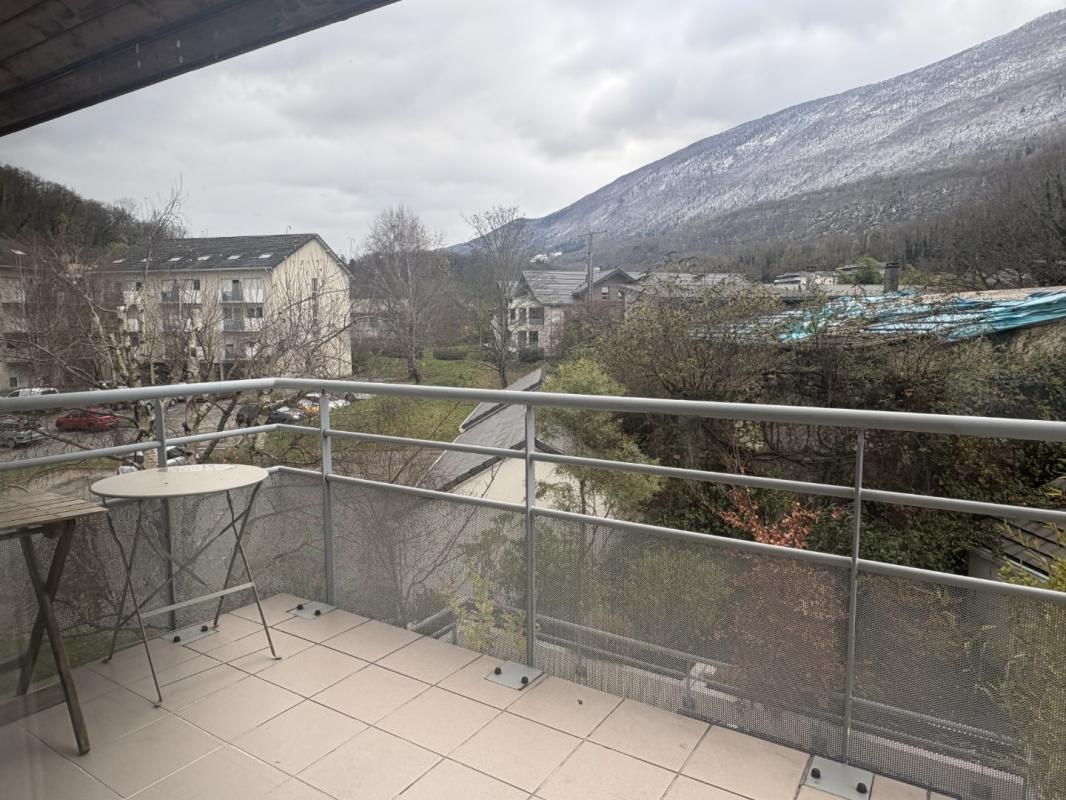 T3 meublé de 72.74 m2 situé sur le Bourget du Lac, au 2ème étage comprenant : une entrée, un dégagement, un séjour ouvert sur une cuisine équipée donnant un accès à deux balcons deux chambres, un WC et une salle de bains.